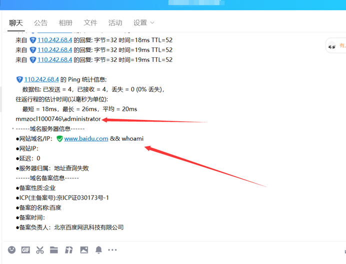 为什么在这边作者可以渗透小机器人背后的服务器呢?其实只是运用了windows 拼接命令中的链接符。