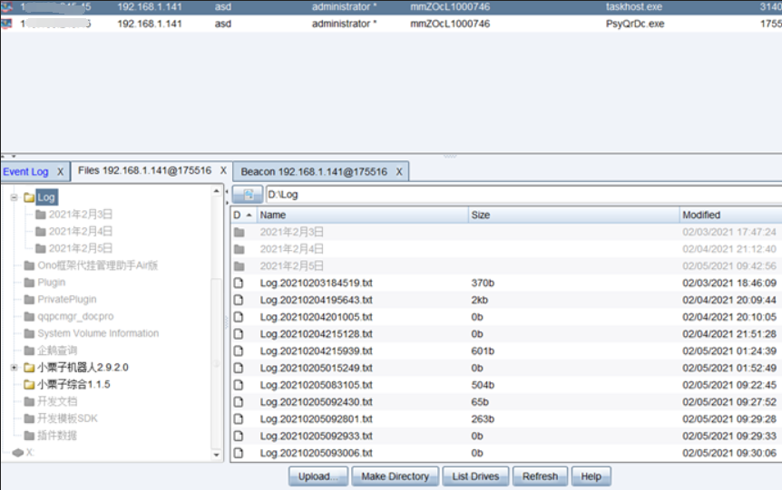 查看服务器上面的内容,读取到一些日志,QQ账户密码,接口等等信息